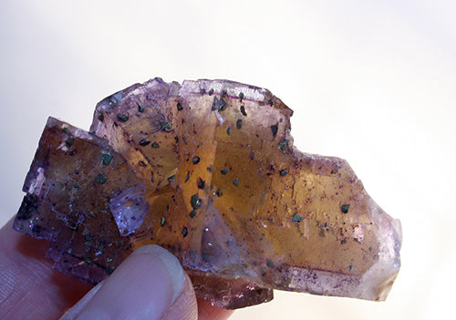 Only 3 specimens left! Some have a yellow core then a layer of blue or purple fluorite, often with crystal inclusions of chalcopyrite or other minerals.