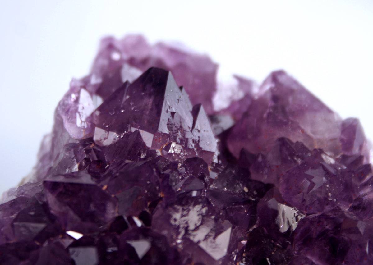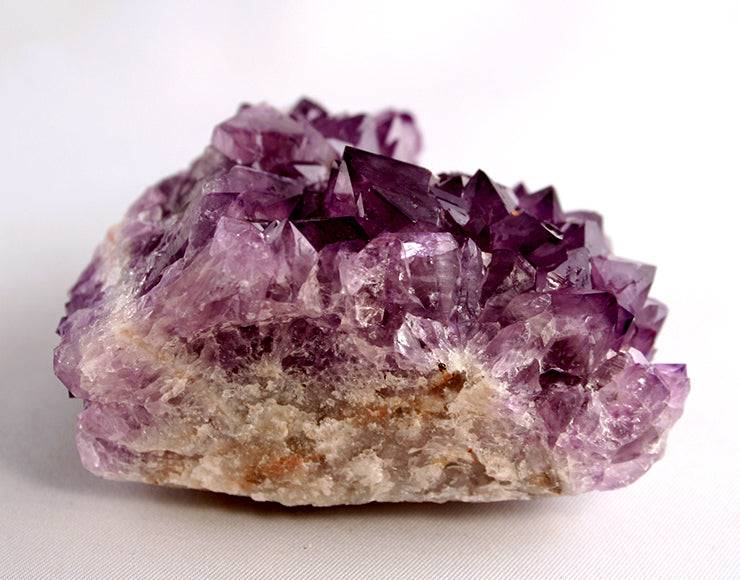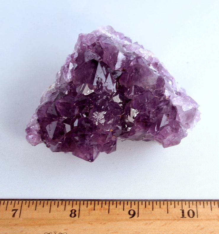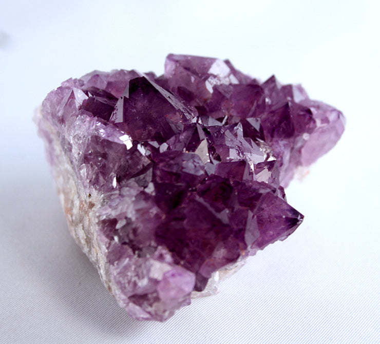 Purple and marcasite inclusions in a perfect amethyst cluster in classic royal purple.