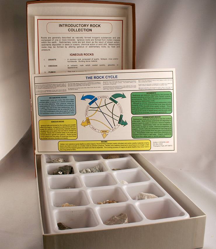 Introduction to Rocks Specimen Kit is a collection of 15 labeled and identified rocks from each group - igneous rocks, metamorphic rocks and sedimentary rocks.